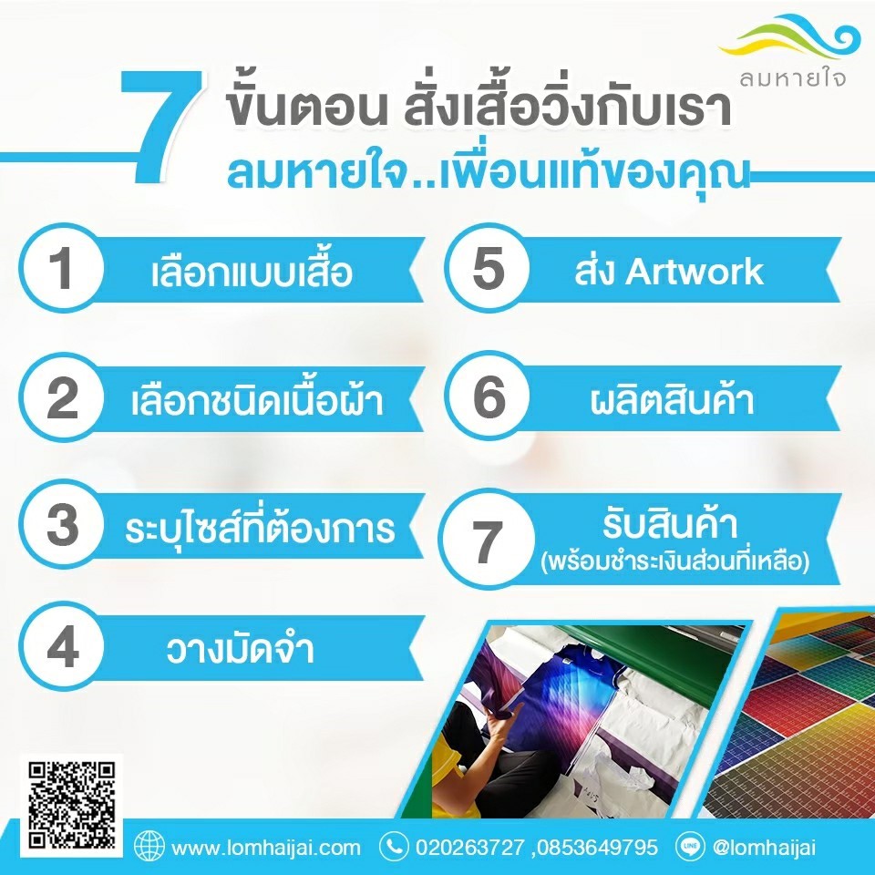 บริษัทลมหายใจ จำกัด เป็นโรงงานผลิตเสื้อและสกรีนเสื้อคุณภาพ มีประสบการณ์รับผลิตและสกรีนเสื้อ ทุกชนิดมากกว่า 30 ปี พร้อมทีมงานผู้เชี่ยวชาญด้านนี้โดยเฉพาะเราใส่ใจในทุกรายละเอียดไม่ว่าจะเป็นการเลือกเนื้อผ้าที่มีคุณภาพ ตลอดจนให้ความสำคัญกับทุกขั้นตอนการผลิตเพื่อให้ลูกค้าได้รับงานที่ดีที่สุด